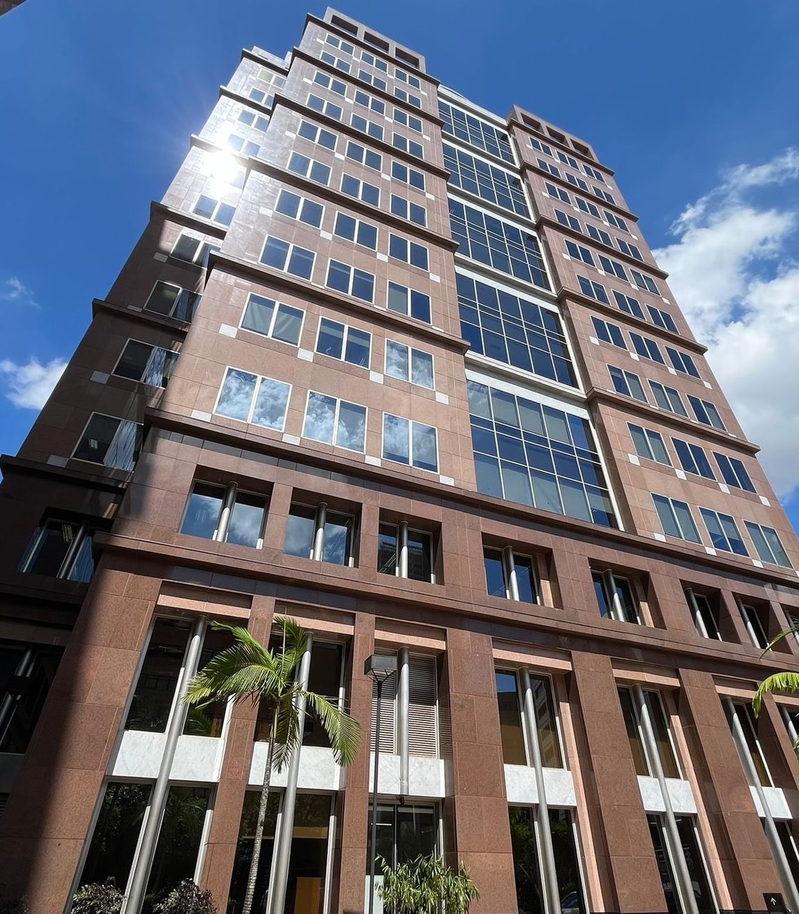 - Infraestrutura: Fachada de vidro termoacústica, pé-direito de 2,80 m, piso elevado, forro termoacústico, 6 elevadores Atlas-Schindler, ar-condicionado VRV